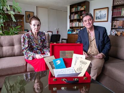 La escritora, de 90 años, le entrega un legado de primeras ediciones de sus libros al director del Instituto Cervantes, Luis García Montero