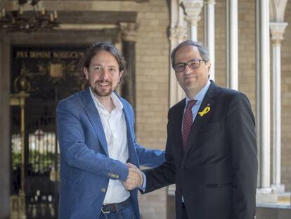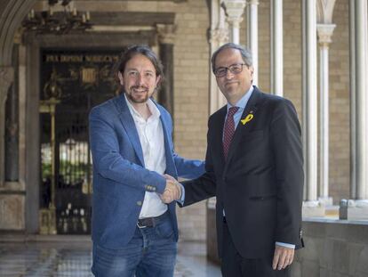 El secretario general de Podemos se reúne en Barcelona con el presidente catalán Quim Torra