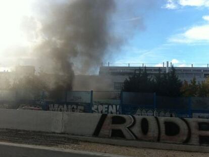 El fuego se origina en una banda de baterías que forman parte del sistema de emergencia La expansión del humo mantiene cortado el tramo del bypass entre la A3 y el Vicente Calderón