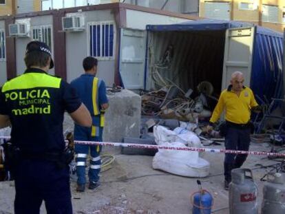 El trabajador sale despedido cinco metros tras explotar una caseta con material de construcción La policía investiga las posibles causas de la deflagración y el origen del gas Sufre quemaduras de primer y segundo grado y permanece grave en el Hospital La Paz El accidente ha ocuurrido pasadas las ocho de la mañana en el barrio de Sanchinarro