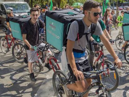 Los repartidores celebran una jornada de huelga para exigir mejores condiciones laborales