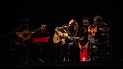 Rodeada de guitarristas, Rosario Guerrero presenta en la Bienal de Flamenco de Sevilla la versión acústica de su última grabación