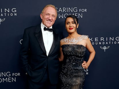 Los anfitriones del evento, Salma Hayek y su esposo, François-Henri Pinault se deshicieron en gestos de cariño