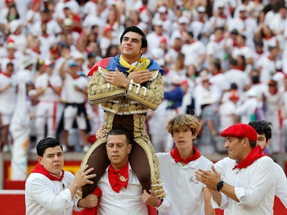 Como ya es tradición, los toros de la ganadería Miura, con 175 años de historia, han cerrado la feria de San Fermín en su último día. La carrera, con la manada corriendo compacta, ha durado 2 minutos y 16 segundos
