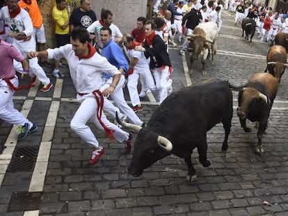 Una manada de toros divida en dos grupos ha propiciado un vistoso sexto encierro en Pamplona