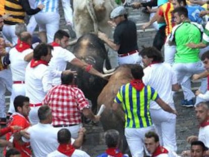 Cuatro corredores han resultado heridos por asta de toro en el quinto encierro de los sanfermines