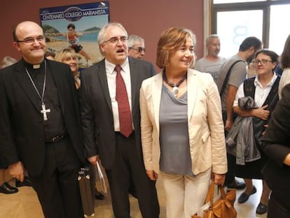 Los trabajadores se han manifestado aprovechando el acto institucional de inicio de curso, presidido por el obispo Munilla