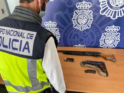 La Policía Nacional halla una pistola ametralladora y una escopeta recortada en el registro