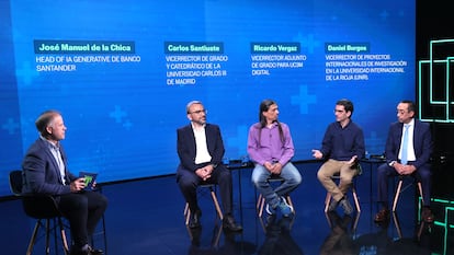 El tercer desayuno del Proyecto Tendencias reúne a los expertos en educación José Manuel de la Chica, de Banco Santander, Carlos Santiuste y Ricardo Vergaz, de la Universidad Carlos III, y Daniel Burgos, de la Universidad Internacional de La Rioja