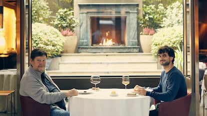 Mikel Zeberio y Alberto Ballarín Sansonetti comparten profesión, la divulgación gastronómica: el primero es una eminencia; el segundo empieza a curtirse a golpe de ‘reels’. Durante una comida en Saddle, buscan un terreno común