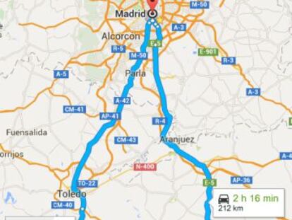 Para viajar de Ciudad Real a Madrid, ¿es mejor la carretera de Toledo o la de Andalucía? Así toma la decisión tu GPS