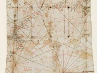 Es un fragmento de un mapa náutico del cartógrafo mallorquín Guillem Soler