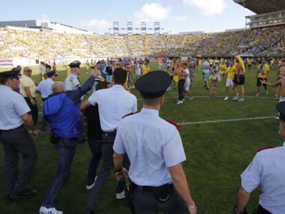 Un empate (1-1) en el minuto 93 da el acceso a Primera a los andaluces después de que la afición de Las Palmas invadiera el campo en los instantes finales