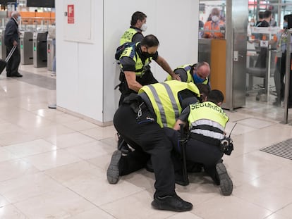 La víctima estaba siendo bloqueada por varios empleados de seguridad tras protagonizar un altercado en la estación de Renfe de Sants