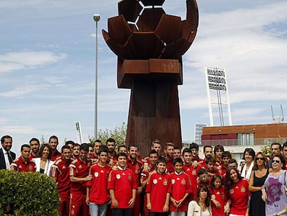 Del Bosque y los internacionales asisten en Las Rozas a la inauguración del monolito en memoria del exseleccionador.