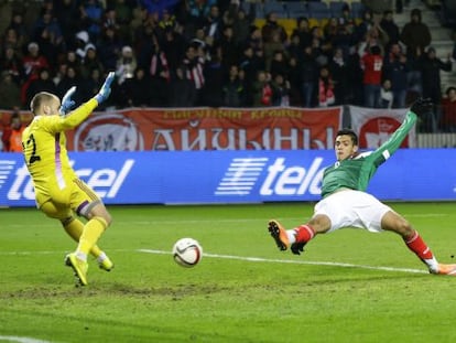 Al conjunto de Herrera no le bastan los dos goles de Raúl Jiménez para ganar a Bielorrusia
