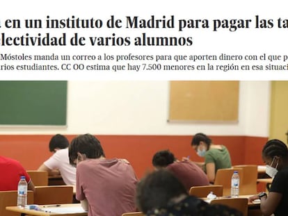 Un centro de Móstoles manda un correo a los profesores para que aporten dinero con el que pagar el examen de varios estudiantes. CC OO estima que hay 7.500 menores en la región en esa situación