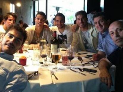 La cantante y su novio se fotografían con los jugadores del Real Madrid, aprovechando la visita del equipo a California