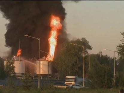 Los servicios de emergencia luchan para evitar que se propague el fuego, que aún no ha sido extinguido