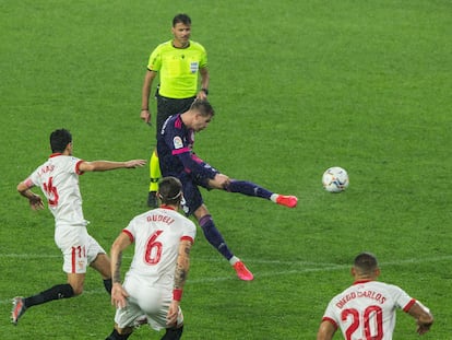 El portero detiene un penalti en el último suspiro y el Sevilla vence al Alavés para encaramarse a los puestos de Champions