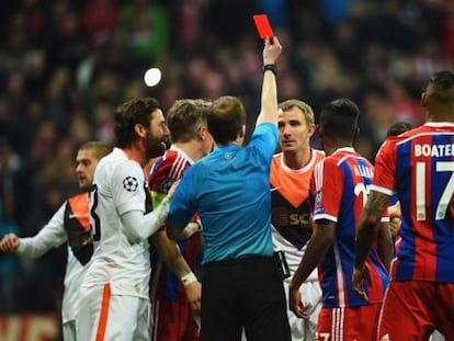 Trabado, el equipo de Guardiola se topa con la telaraña del Shakthar en un duelo muy rudo, en el que se cometieron 35 faltas y Xabi Alonso fue expulsado por Undiano Mallenco