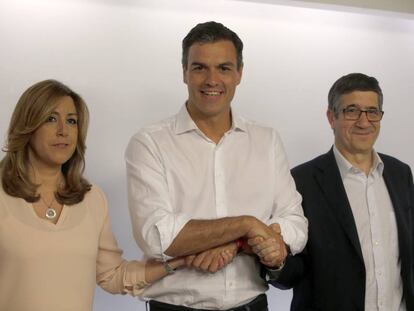Afines a las candidaturas de Susana Díaz, Pedro Sánchez y Patxi López explican sus motivos para apoyarles