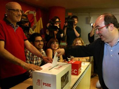 La militància del districte de Sant Martí, on vota Miquel Iceta, es bolca amb Pedro Sánchez