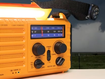 Este dispositivo para recibir información ante situaciones de crisis también se carga mediante energía solar, incluye una pequeña brújula y una linterna potente