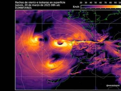 Esta extensa y profunda borrasca es en realidad una familia con tres centros de bajas presiones que ‘bailan’ a un mismo son en un fenómeno muy visual que “no va a provocar una mayor adversidad y no pasa de anécdota”, según la Aemet