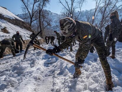 Los militares trabajan tras la nevada para despejar las pronunciadas cuestas del casco histórico de la ciudad