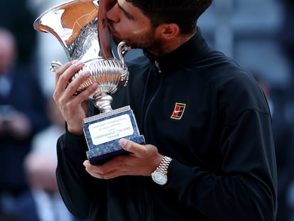 Alcaraz se proclama campeón del Masters 1000 de Roma tras vencer a Sinner en dos sets | El murciano consigue su tercer título esta temporada en Italia tras ganar 6(5)-7 y 1-6
