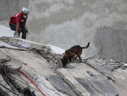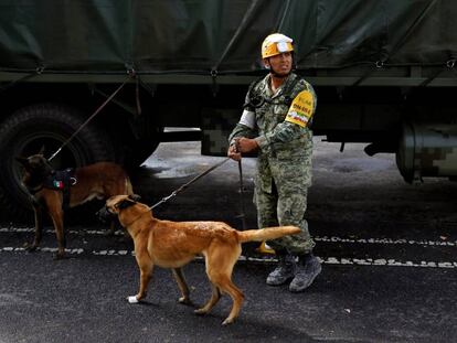 20 perros rescatistas acompañan a la Marina mexicana en las zonas de desastre que ocasionaron los dos sismos que azotaron México este mes