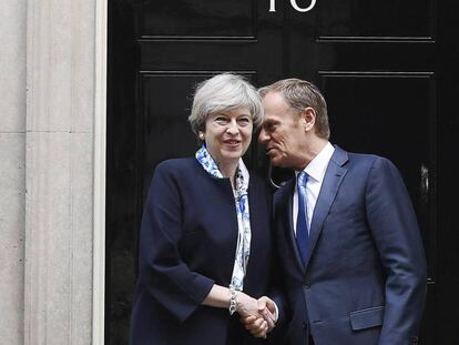 La primera ministra se reúne en Downing Street con el presidente del Consejo Europeo por primera vez desde la activación del proceso del Brexit