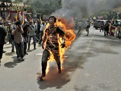 Un tibetano exiliado se prende fuego en Nueva Delhi en vísperas de la visita del presidente chino