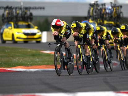 El Movistar muestra su progreso en la especialidad que ejemplifica mejor la revolución científico técnica del ciclismo, con Romeo y Castrillo a 55s en la general