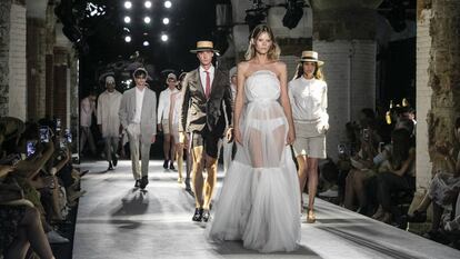 El desfile del diseñador Toni Miró busca remover las conciencias con inmigrantes y un cayuco. SOS Racismo se manifiesta a favor, mientras que una asociación senegalesa lo tacha de frívolo
