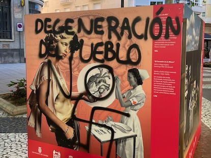 La muestra, parte del programa de actos del Orgullo, sufrió otro ataque el fin de semana cuando alguien intentó quemar un panel