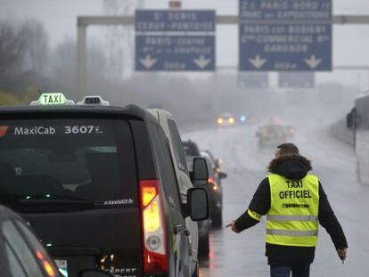 Un sector del taxi protesta con bloqueos en los aeropuertos y las entradas a París