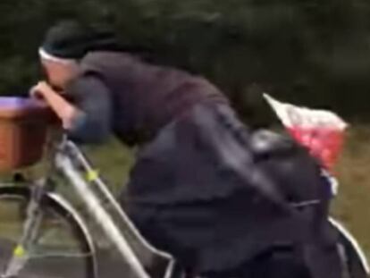 La religiosa, de origen polaco y equipada con el hábito y unas chanclas, es grabada en una carretera de Galicia