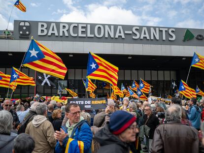 La ANC congrega a 500 personas en la estación de Sants de Barcelona contra el caos de Rodalies