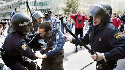 La protesta, en Zaragoza en 2019, derivó en enfrentamientos con la Policía y siete agentes resultaron heridos, uno de ellos grave