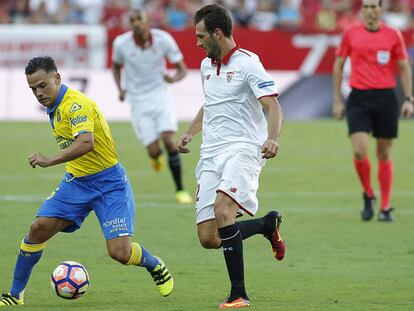 Las Palmas, relajada, exhibe toque, pero cae en inferioridad numérica y en el tramo final con un gol de Van Wolfswinkel