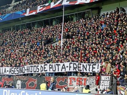 Antes del duelo contra el Atlético, los aficionados alemanes exhibieron una pancarta con el siguiente mensaje: "¡Lanzadores de botella-asesinos-hijos de puta-Frente!”