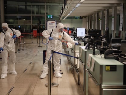 Acompañamos a un grupo de efectivos de la unidad del Ejército durante la desinfección del aeropuerto Adolfo Suárez-Madrid Barajas