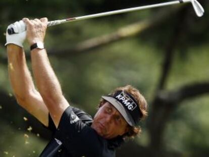 En una segunda jornada que no pudo acabar por falta de luz, Mickelson resiste como líder, Tiger Woods, McIlroy y Gonzalo Fernández-Castaño van tres arriba, y Olazábal se despide