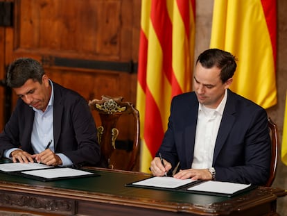 El presidente de la Carlos Mazón anuncia una inversión de 35 millones para el centro de formación profesional tras firmar un convenio con PowerCo, firma de Volkswagen que construye la planta