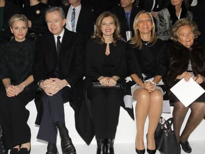 Mientras el presidente dirigía la intervención en Malí, la primera dama se dejó ver en los desfiles más lujosos con el multimillonario Bernard Arnault y la princesa Charlene de Mónaco