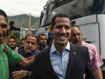 La “avalancha humanitaria” de Guaidó no consigue superar el cordón militar impuesto por Maduro y se consuela con las deserciones de uniformados