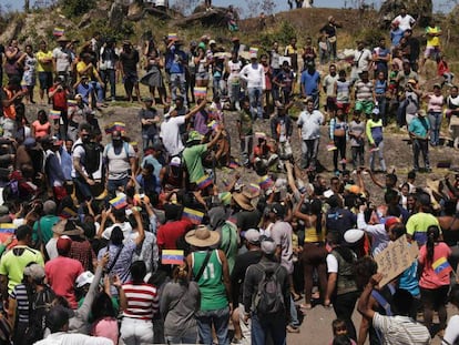 Cientos de manifestantes, muchos de ellos indígenas de la etnia pemón, se enfrentaron a la Guardia Nacional y los paramilitares chavistas por las ayudas