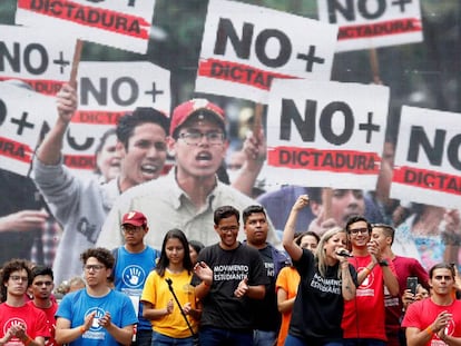 Varias generaciones de estudiantes que desde 2007 han empujado la lucha política en Venezuela se reúnen en una vigilia en una plaza de Caracas